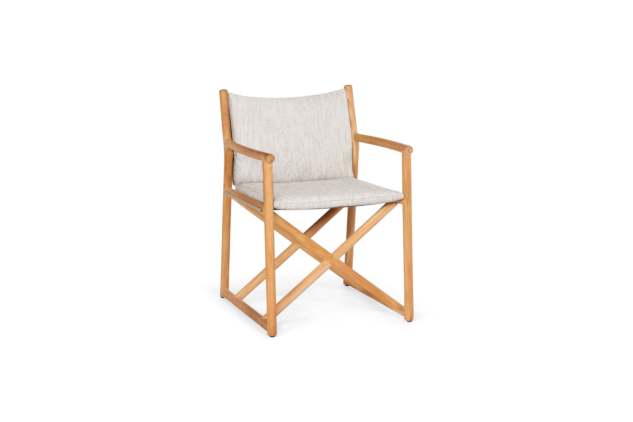 • Teak met Wit textileen: Voor een fris en zomers contrast.