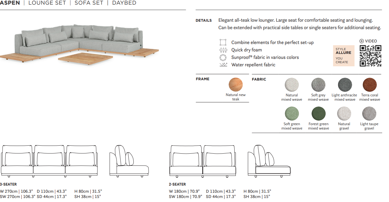 De Aspen loungeset is modulair, welke inhoudt dat je je eigen opstelling eventueel kunt samenstellen. Heb je hier een vraag over? Bel ons gerust, we helpen je graag verder.