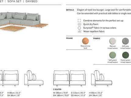 - Kussens zijn uitgevoerd met Quick Dry Foam (all-weather)