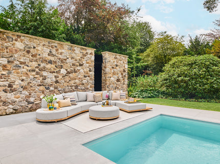 Gemaakt van hoogwaardig gecertificeerd teakhout, biedt deze loungeset een prachtige luxe uitstraling die jarenlang meegaat. Dankzij de gebruik van fast dry foam blijven de kussens altijd comfortabel, zelfs na een regenbui. Daarnaast is er ook een traditionele loungeset beschikbaar voor de liefhebbers van een meer tijdloze stijl.
