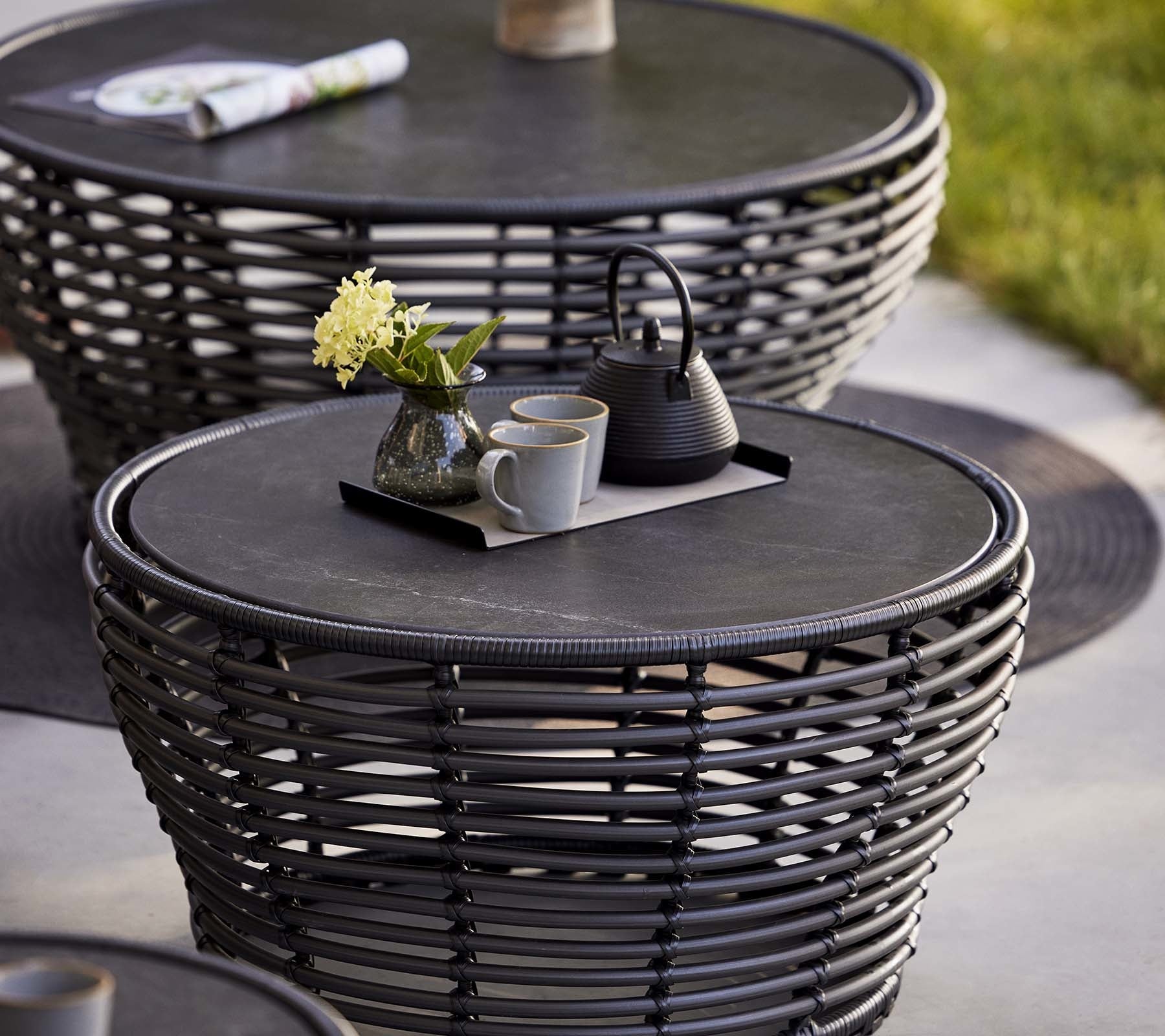 De Basket salontafel is een prachtig design van het Deense merk Cane-Line. Het grove wicker om het stalen onderstel en het keramiek blad met marmer look geven deze salontafel geweldige uitstraling! In 3 maten verkrijgbaar. Basket salontafel is ontworpen in samenwerking met Søren Rose Studio. Een salontafel geïnspireerd op de natuur met zijn ronde vormen die een organische uitstraling geven. Basket salontafel wordt vervaardigd in het duurzame Cane-line Weave® op een thermisch verzinkt stalen frame met een elegant keramisch tafelblad.