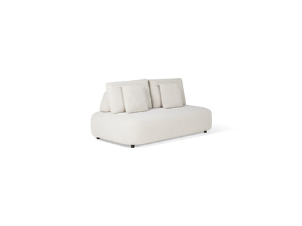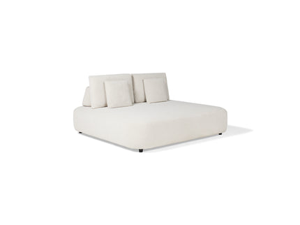 De loungeset is afgewerkt met een eersteklas buitenstof van Spaans fabricaat. Deze stof is voorzien van een speciale coating aan de binnen- en buitenkant waardoor er geen vocht tot de kern doordringt. De stof voelt zacht aan en is stijlvol verwerkt met minimale naden waardoor de elementen een mooie strakke uitstraling hebben.