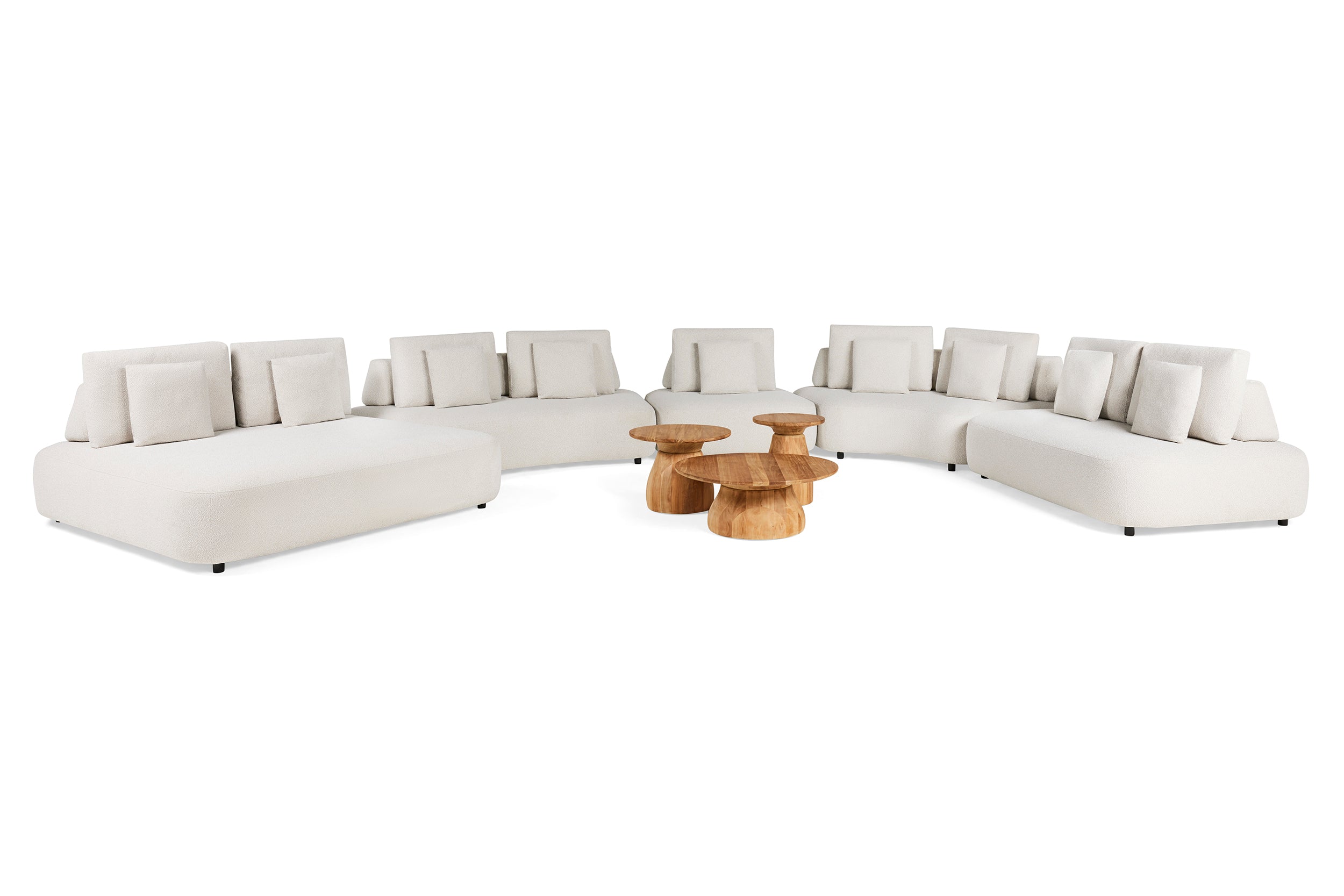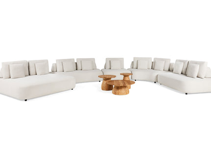 SUNS Blocchi Loungeset steelt de show met zijn speelse en opvallende design. Uitnodigende ronde vormen, volledig in stof. Volumineuze organisch gevormde zitelementen. Een zeer relaxte zit en een uitnodigend aanzien. Een design-object waarmee je de sfeer van een modern interieur letterlijk naar buiten haalt.
