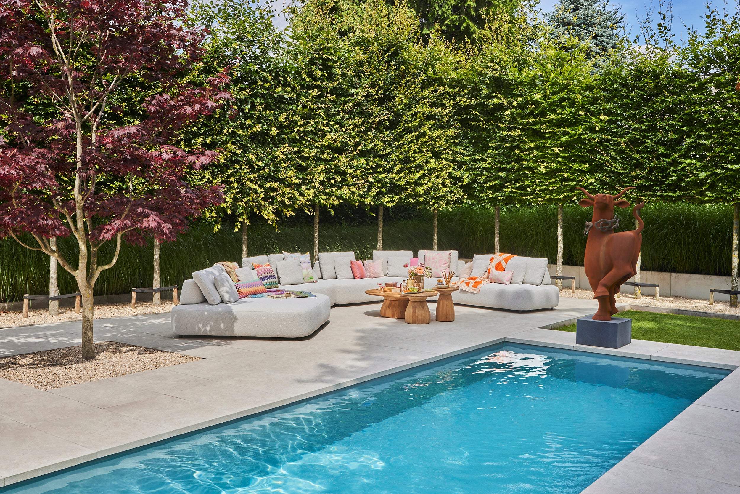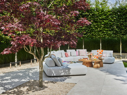 Bij ieder element zijn sierkussens in dezelfde stof inbegrepen. De losse kussens geven Blocchi een speels karakter en maken dat jij je perfecte plek creëert voor een buitenlunch, borrel en ontspanningsmoment.