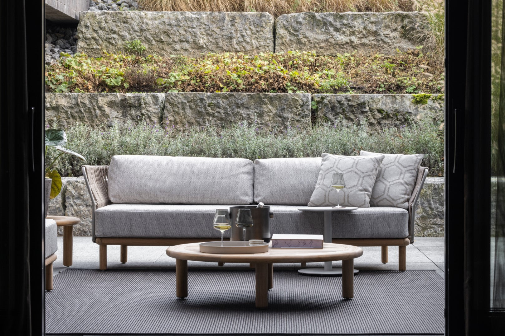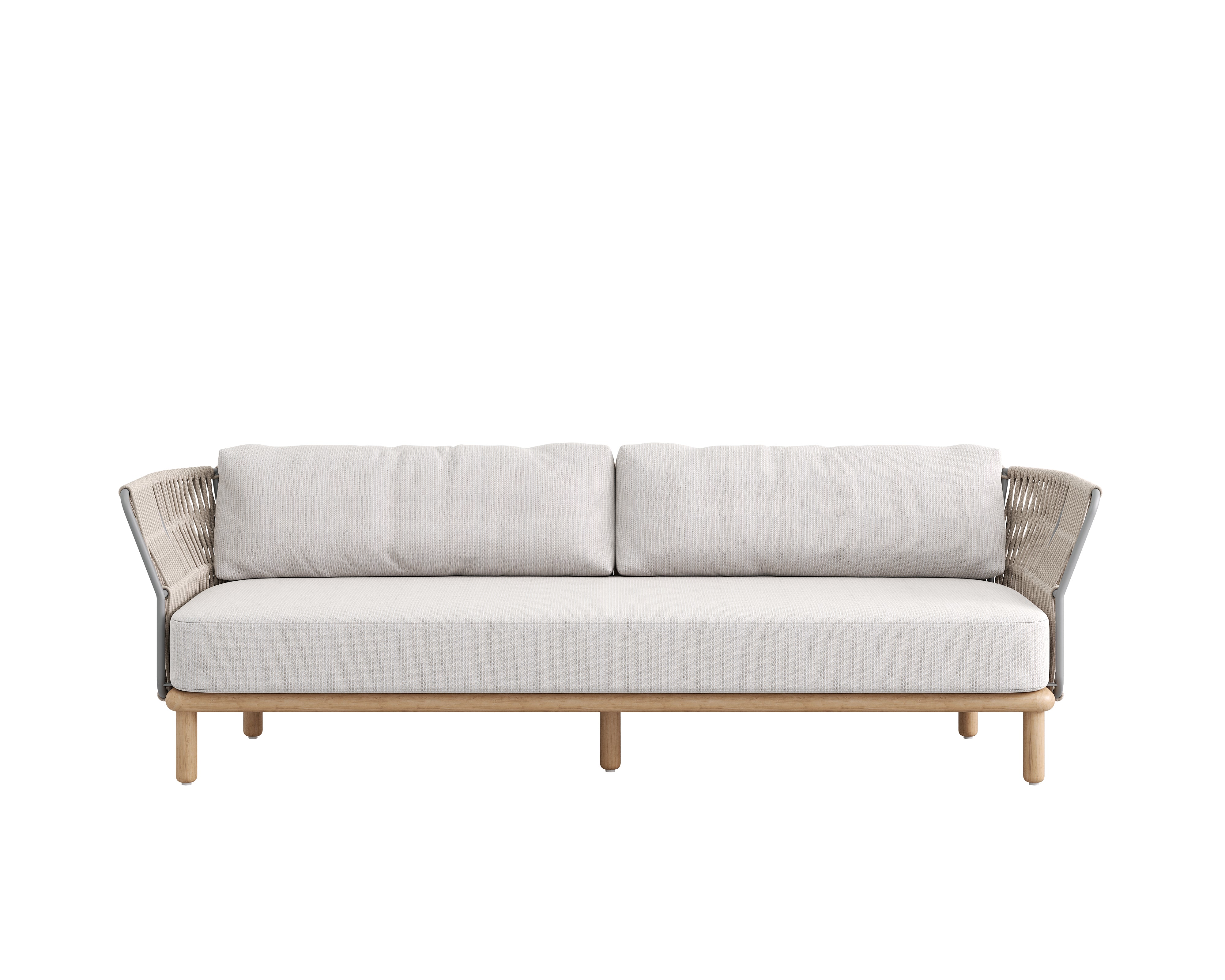 - De sofa is vervaardigd met Ardenza rope in de verfijnde kleur sepia grey, wat bijdraagt aan een modern en tijdloos uiterlijk.