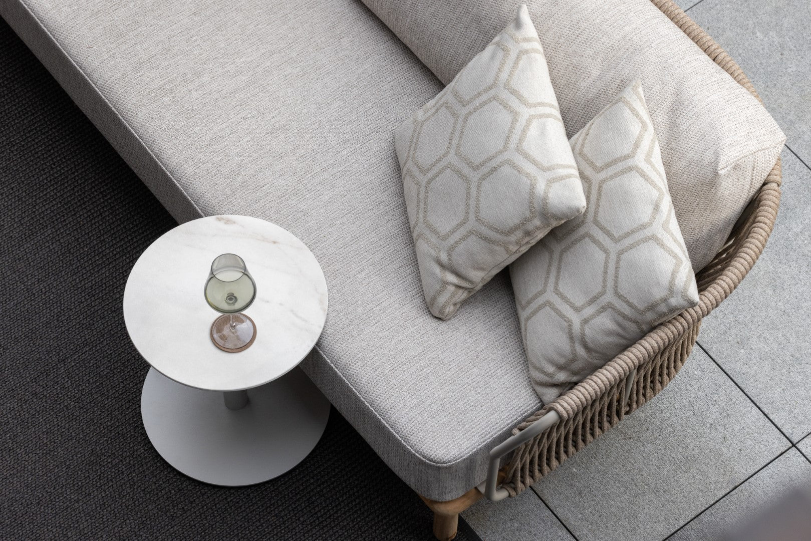 - De Prato kussens, ontworpen als all weather, zijn verkrijgbaar in de chique kleur shell en bieden zowel comfort als weerbestendigheid.