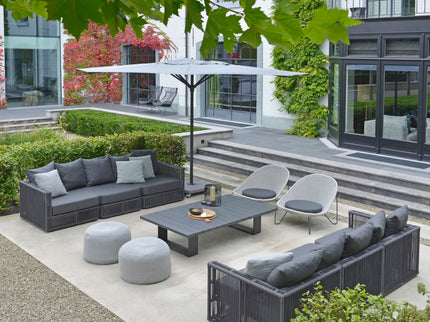 Beschikbaar in de verfijnde kleuren taupe en donkergrijs, voegt de Braga parasol een vleugje luxe toe aan elke buitenomgeving. Maak uw buitenleven completer en geniet van luxe schaduw wanneer u dat het meest nodig heeft.