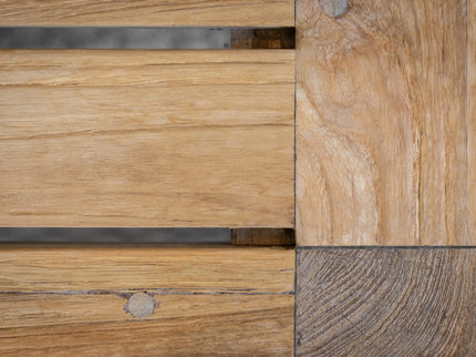 - Gemaakt van hergebruikt teak, wat bijdraagt aan een warme en unieke uitstraling