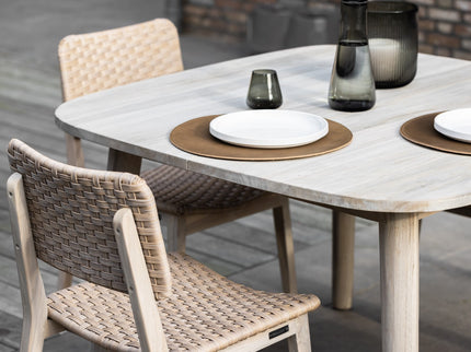 - Verrijkt met een frame van aged teak, biedt deze stoel zowel stijl als duurzaamheid.