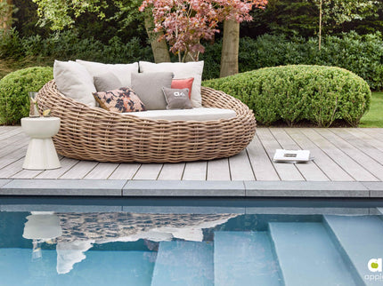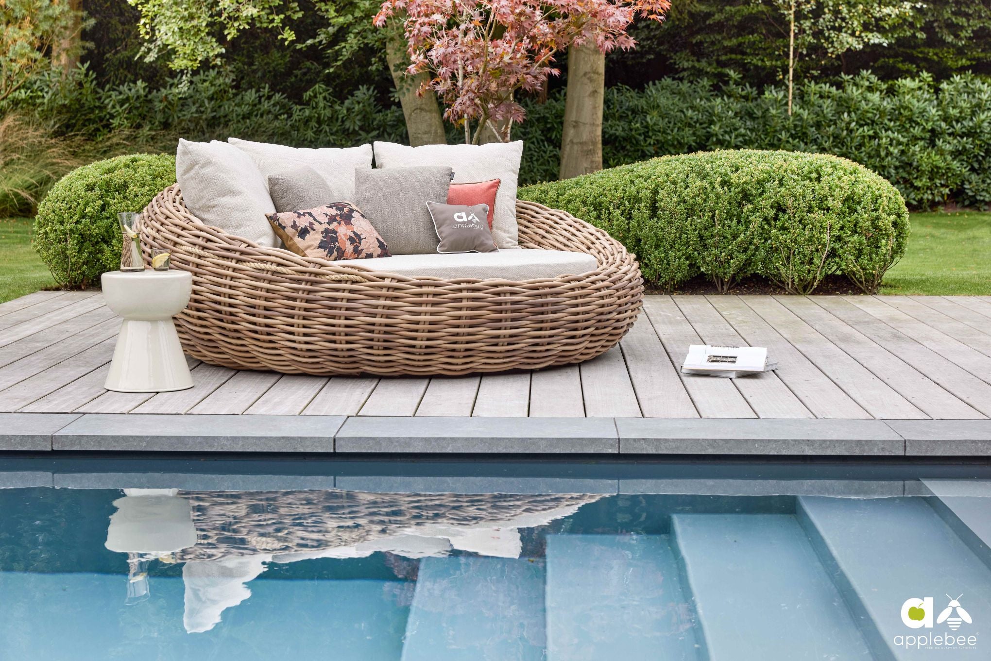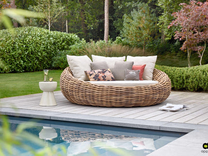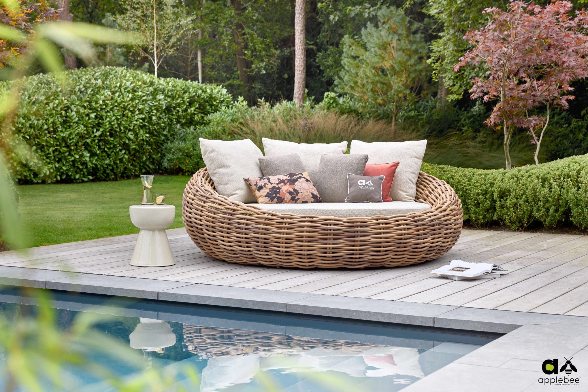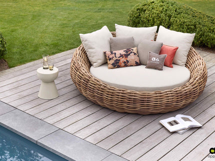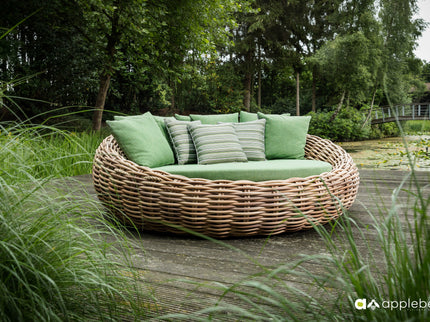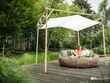 Met afmetingen van 69 cm hoogte, 220 cm breedte en 169 cm diepte, nodigt de Applebee Cocoon Daybed 220 je uit om in alle rust te loungen, of je nu de zon wilt opzoeken of een ontspannen schaduwmoment wilt ervaren. Laat je buitenomgeving stralen met deze stijlvolle en duurzame toevoeging van Applebee.