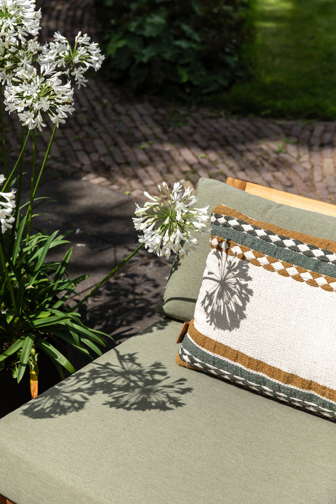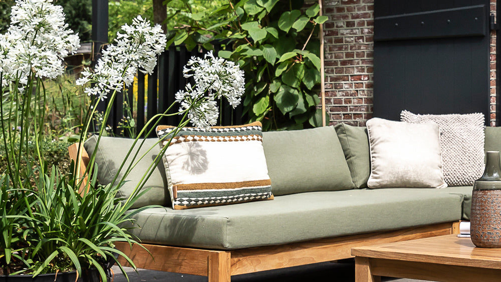 De Coffee Bay serie is modulair, je stelt deze dus helemaal zelf samen. Het frame is gemaakt van a-kwaliteit teakhout en de zitting is van textileen. Dit zit zacht en met dit materiaal drogen de kussens lekker snel.
