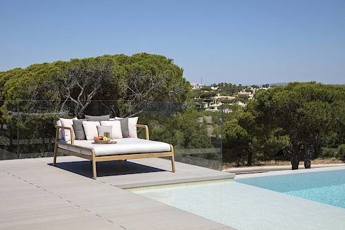 De Flexx serie kenmerkt zich door zijn elegante ronde vormen. Het Daybed heeft een luchtige uitstraling en een uitstekend zitcomfort. De rugleuning is gemaakt van Sunbrella straps in een antraciete kleur. De loungebank kan daardoor het hele jaar buiten blijven staan. De kussens zijn ook helemaal all weather maar wij adviseren om deze bij langdurig slecht weer en winterperiode naar binnen te halen, omdat ze anders erg vies kunnen worden.