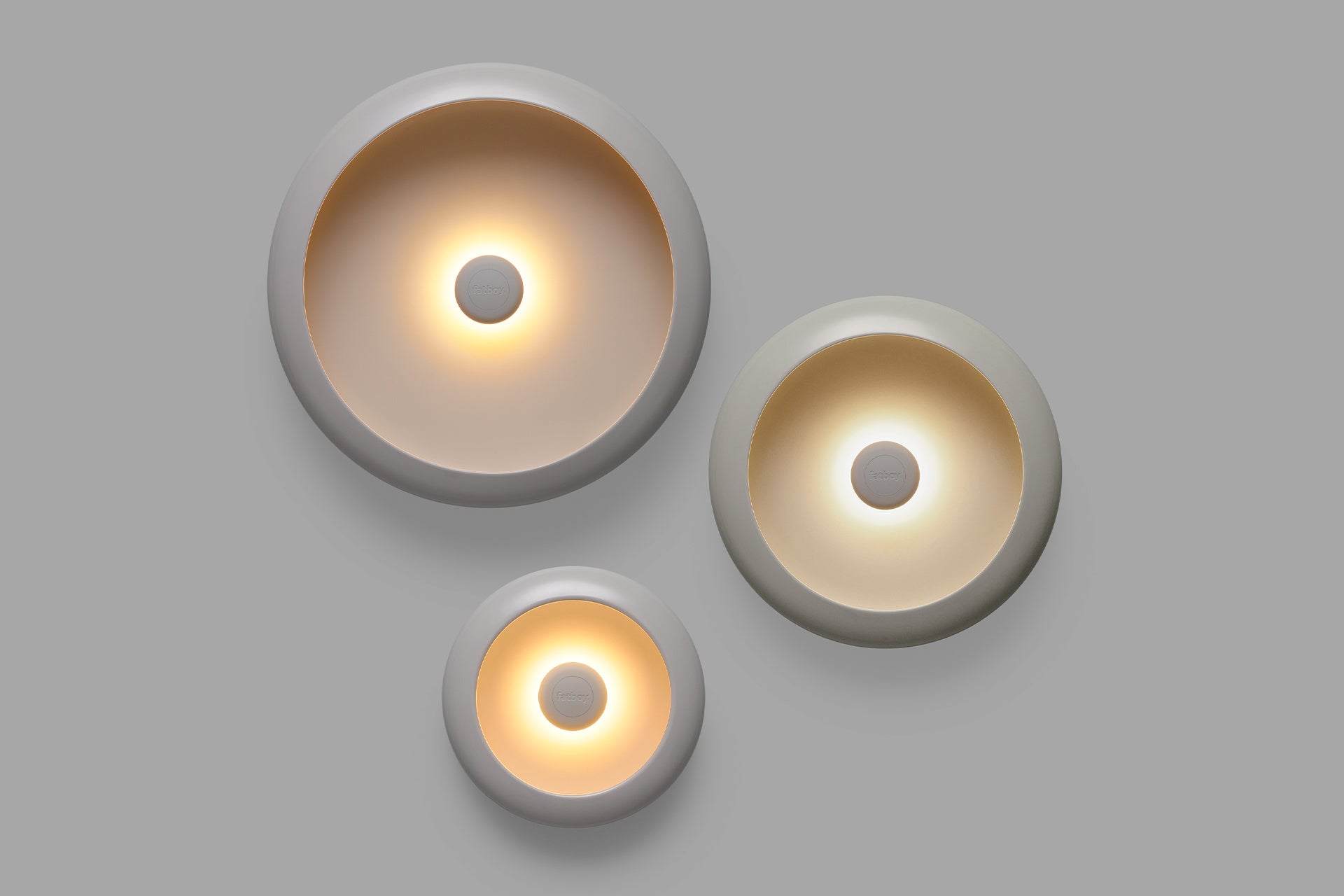 Het ledlampje is een los element dat met een magneetje in de schaal klikt. Je kunt het lampje dus uit de schaal halen om weer op te laden met het meegeleverde USB-C kabeltje. Met de knop kun je het lampje dimmen van schemerstand tot lekker fel. Oloha is verkrijgbaar in drie formaten, van grote verschijning tot klein sfeerlichtje.