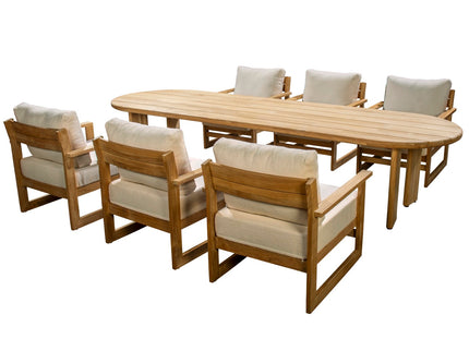 Transformeer uw eetervaring met de Fiji Low Dining Set en creëer een luxe ambiance in uw tuin of op uw terras.