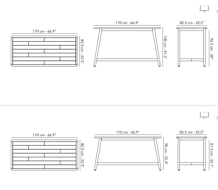 - Afmeting 170x80x96.5 en de maat 170x80x81.5cm
