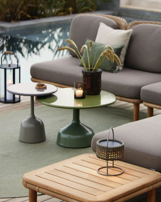 Glaze is werkelijk een prachtige bijzet/salontafel, ontworpen door het Cane-line Design. De tafel heeft een ronde vorm die bestaat uit een aluminium frame met een lavasteen blad. Het blad is handgemaakt van Italiaanse lavasteen en voorzien van een dubbele glazuurlaag, zodat elke salontafel uniek is en er geen twee gelijk zijn. De dubbele glazuurlaag zorgt ervoor dat deze tafel onverwoestbaar zijn en het hele jaar buiten kunnen staan.
