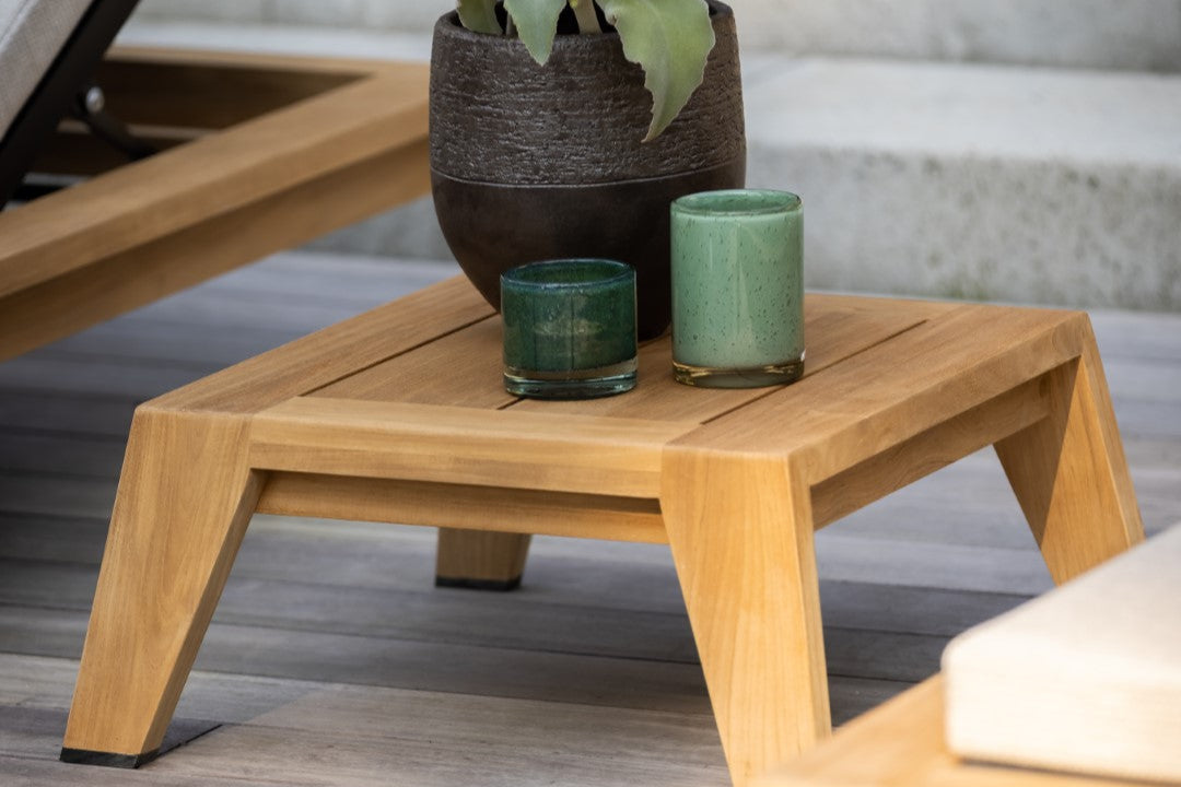 Ontdek de elegantie van de Hybrid bijzettafel, een meesterwerk in teak dat een vleugje luxe aan uw interieur toevoegt.