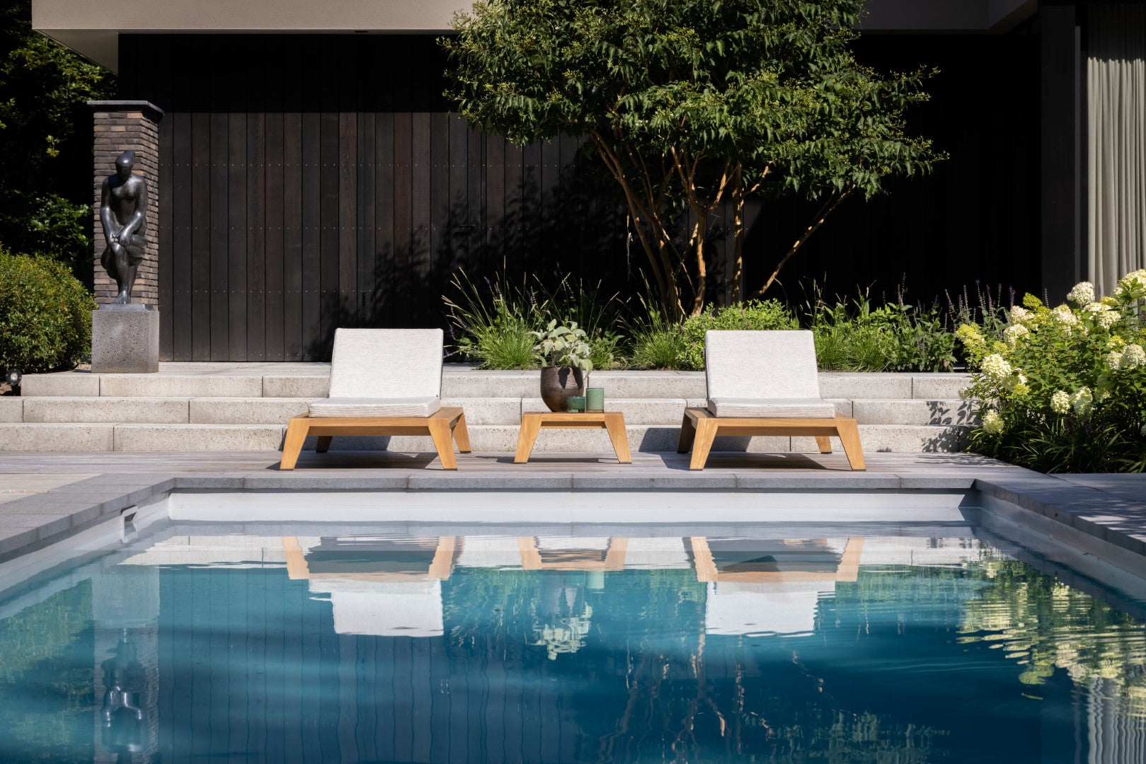 - Gemaakt van een stevig teak frame voor langdurige duurzaamheid en elegantie.