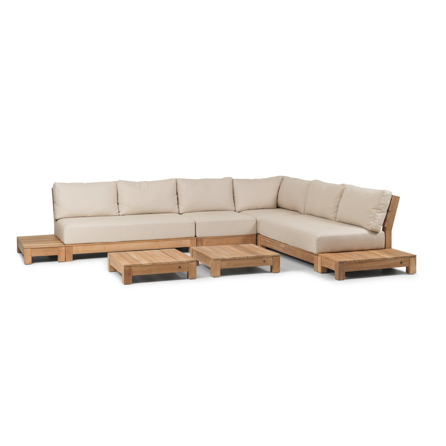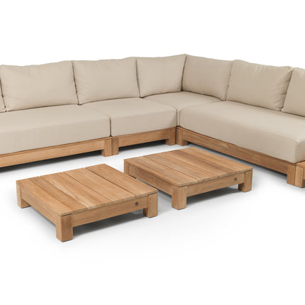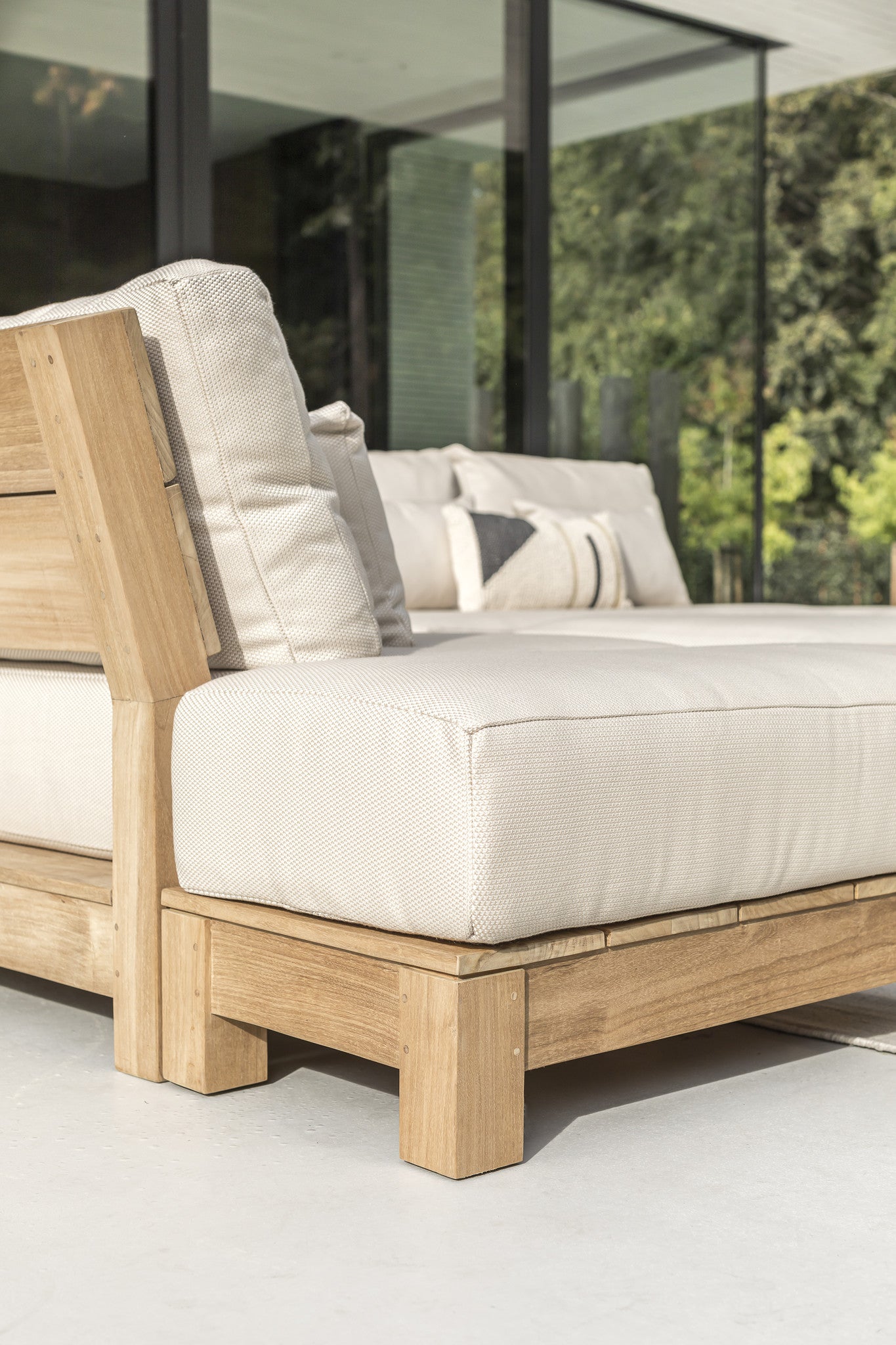 De James Loungeset zorg voor een ultiem luxe gevoel. De loungeset is volledig gemaakt van A kwaliteit teakhout wat deze set een onwijs warme en mooie uitstraling geeft. Deze James loungeset wordt geleverd met all weather Sunbrella kussens waardoor je deze set grotendeels van het jaar buiten kan laten staan. Spreekt de kussen kleur op de foto je niet helemaal aan? Geen probleem! Wij laten de kussens voor de loungeset op maat maken. Je hebt hierbij veel keuze uit verschillende Sunbrella stoffen en kleuren! Kom je er niet helemaal uit met de afbeeldingen? Kom dan gerust bij ons langs in de showroom om de verschillende stoffen en kleuren te "voelen" en bekijken.