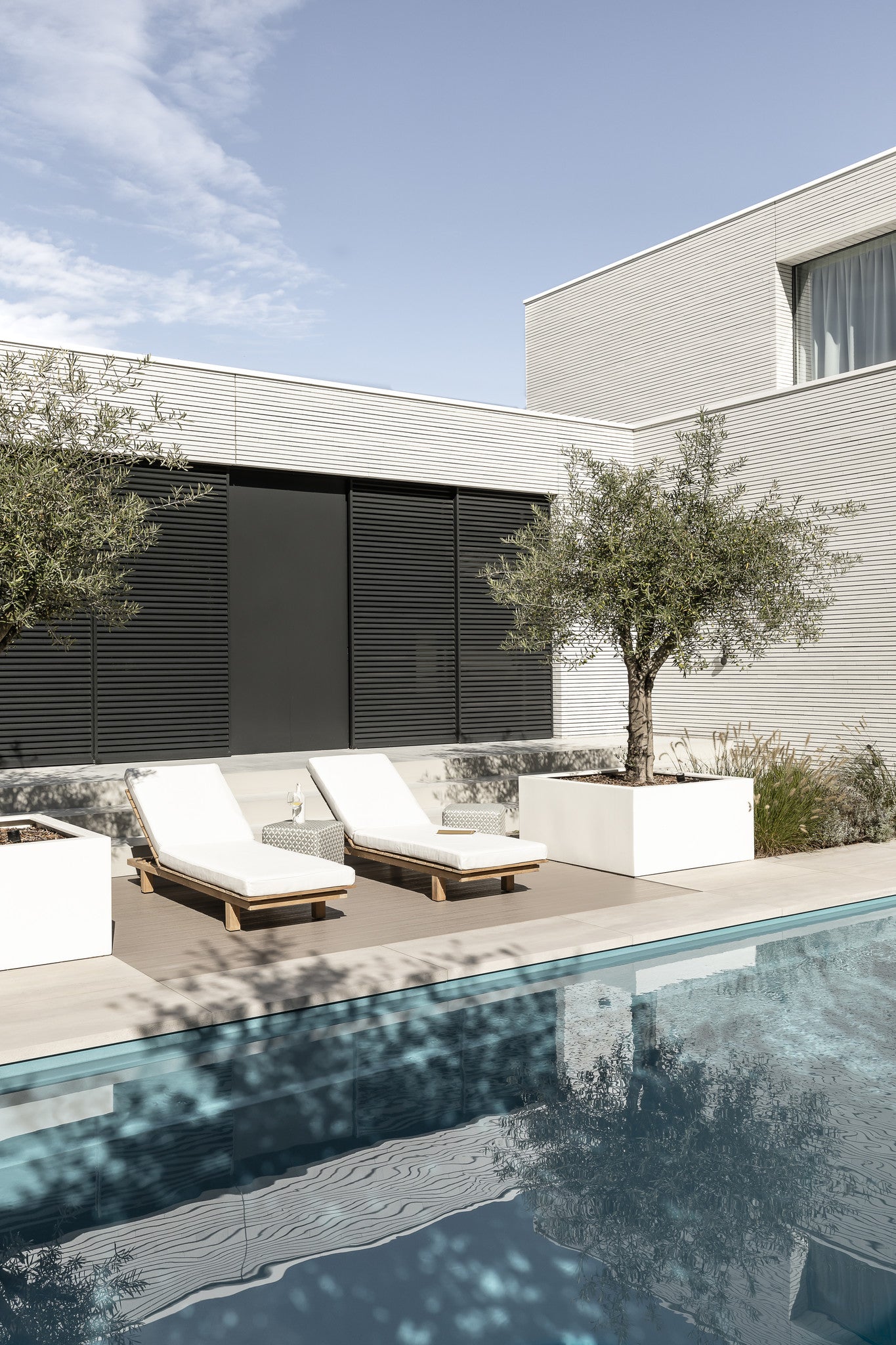 Deze kussens zijn gemaakt van luxueus traagschuim en hoogwaardige Sunbrella stof. Dankzij een speciale hoes blijven ze droog, zelfs na een verfrissende duik in het zwembad. Geniet van ongeëvenaard comfort en stijl met het James ligbed van Wolfwood.