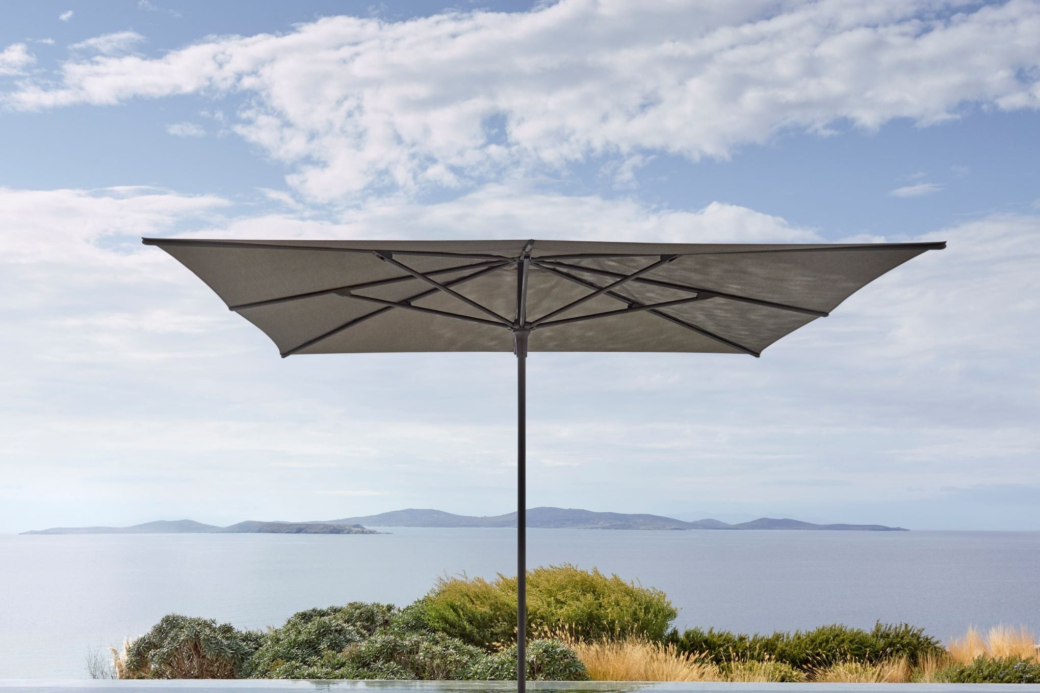 Neem er nota van dat de parasol zonder voet wordt geleverd. De Elba parasolvoet past echter perfect bij dit elegante ontwerp.