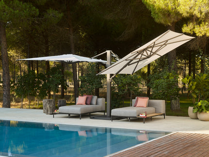 Transformeer uw buitenruimte met de luxueuze Jardinico JCP.6 serie Parasol, een meesterwerk van design en functionaliteit. Deze vrijhangende parasol is niet alleen een schaduwplek, maar een statement dat elk terras siert. Deze parasol biedt een overvloed aan schaduw, perfect voor ontspannen bijeenkomsten of elegante diners in de open lucht.