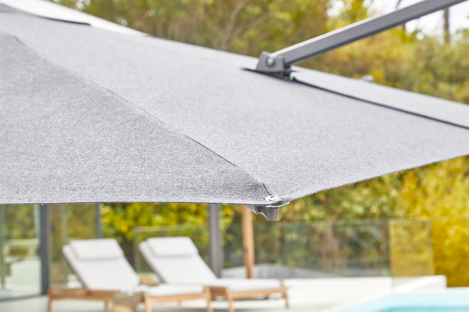 Gemaakt van gepoedercoat aluminium, weerbestendig en ontworpen voor langdurig gebruik. U heeft de keuze uit zes verfijnde kleuren voor het frame: Wit, Linen, Alu Teak, Lava, Anthracite en Zwart. Daarnaast kunt u het doek personaliseren met een scala aan weelderige tinten, waaronder Natural, Latte, Clay, en nog veel meer.