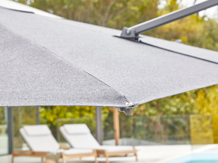 De Antego Parasol biedt ongeëvenaarde veelzijdigheid. Met de mogelijkheid tot kantelen in hoogte, zowel links als rechts, en een 360° rotatie, kunt u deze parasol eenvoudig aanpassen aan de zon. Hij is bestand tegen windkracht tot 39 km/u, wat zorgt voor stabiliteit, zelfs bij winderige omstandigheden.