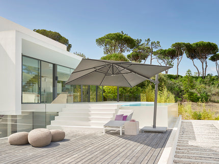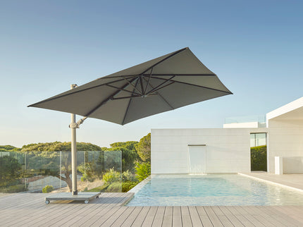 Met een doekhoogte van 203 cm en een totale hoogte van 262 cm, is de Antego Parasol perfect afgestemd op functionaliteit en luxe. Een op maat gemaakte hoes is beschikbaar om uw parasol te beschermen wanneer deze niet in gebruik is.