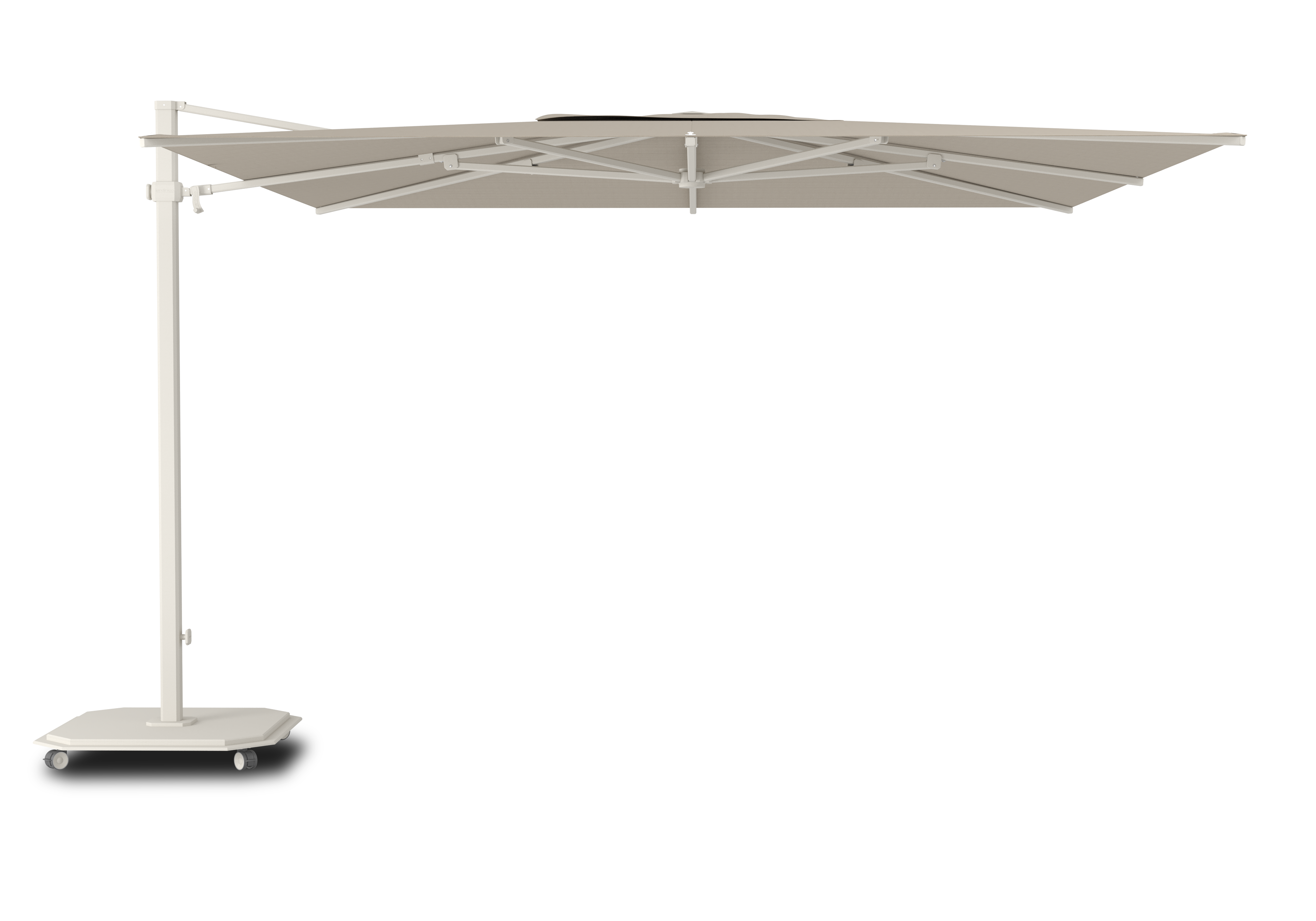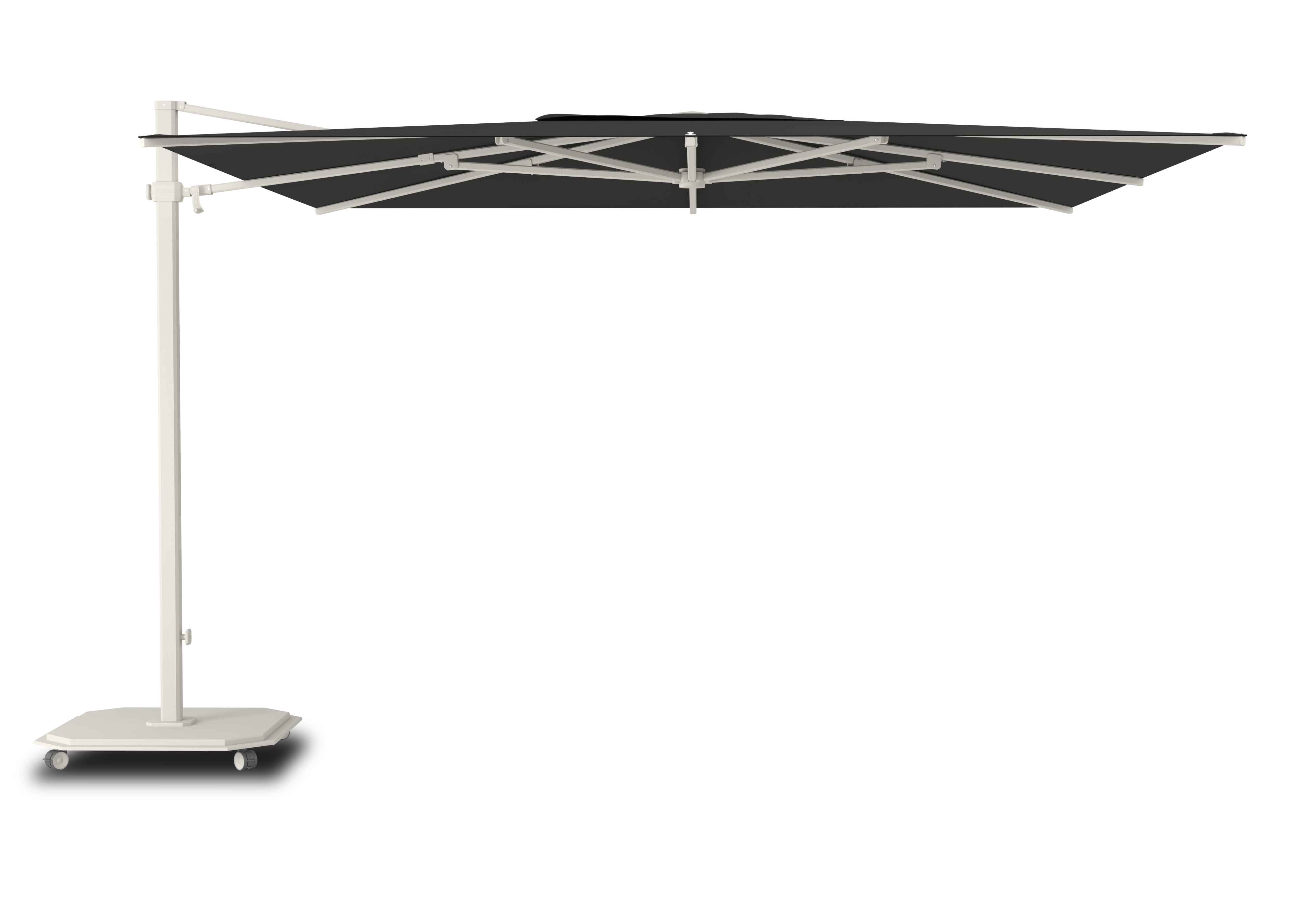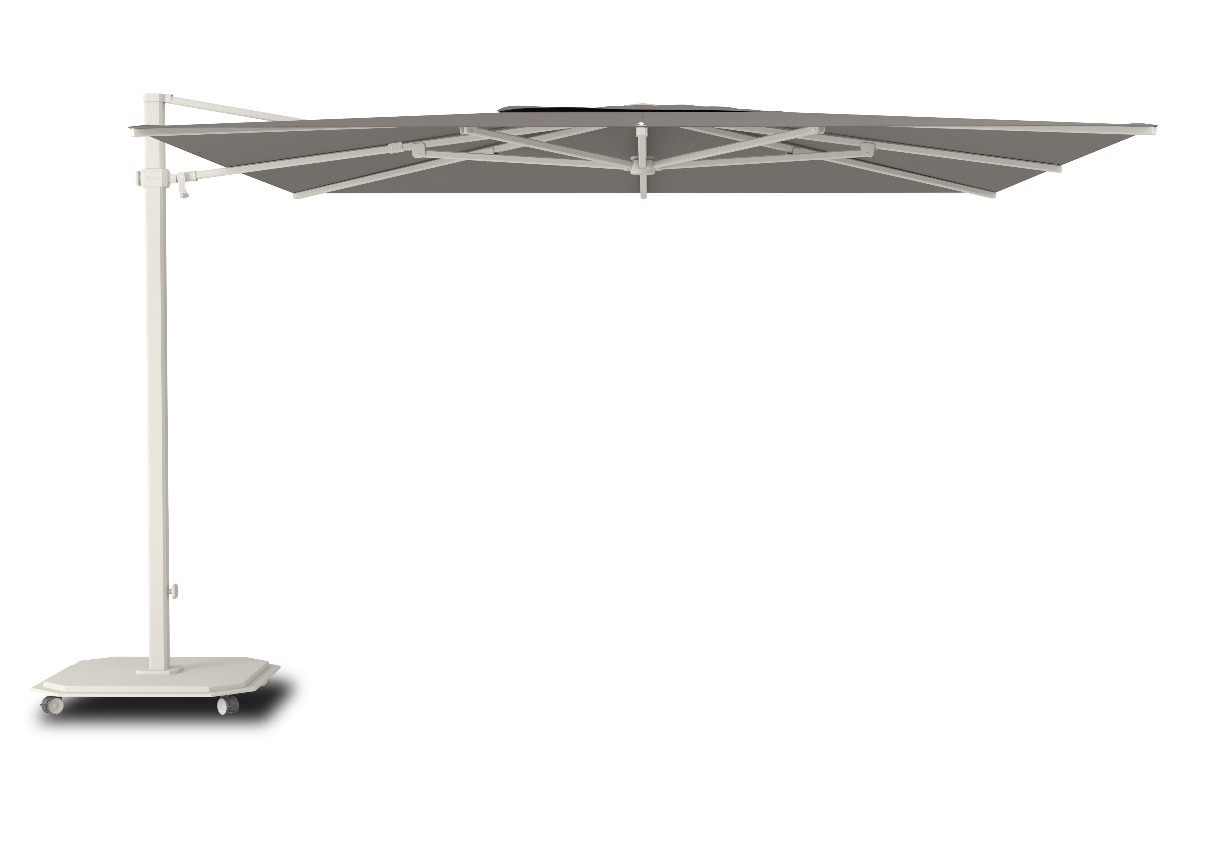 Dit zorgt ervoor dat u de perfecte combinatie kunt kiezen die naadloos aansluit bij uw persoonlijke stijl en de esthetiek van uw omgeving. De parasol wordt standaard geleverd met een solide grondanker, met de optie om een parasolvoet te bestellen in dezelfde kleur als het frame (met uitzondering van alu teak en cappuccino, waarvoor charcoal wordt gebruikt).