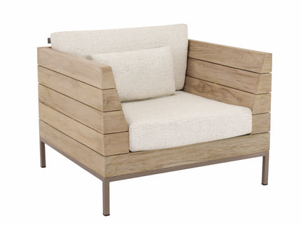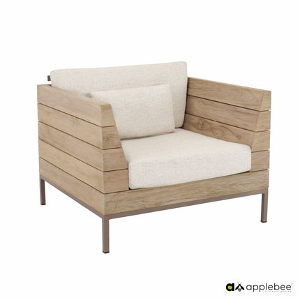 - Geniet van het duurzame aluminium frame, uitgevoerd in een stijlvolle taupe kleur, dat perfect contrasteert met het teak in de kleur coastal.