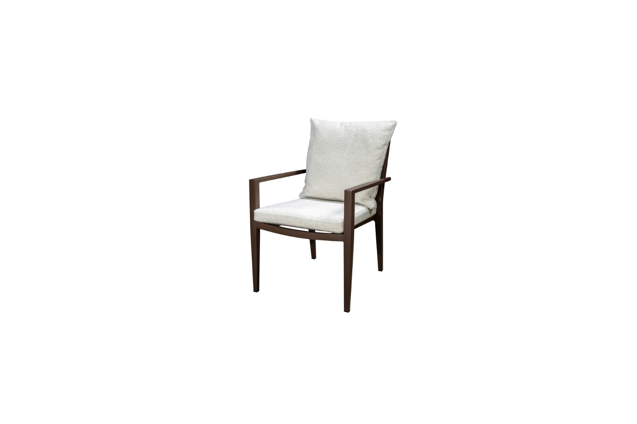 - Frame alu bronze met toffee riem en kussens in wol wit.