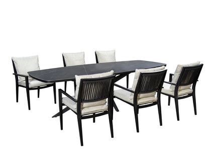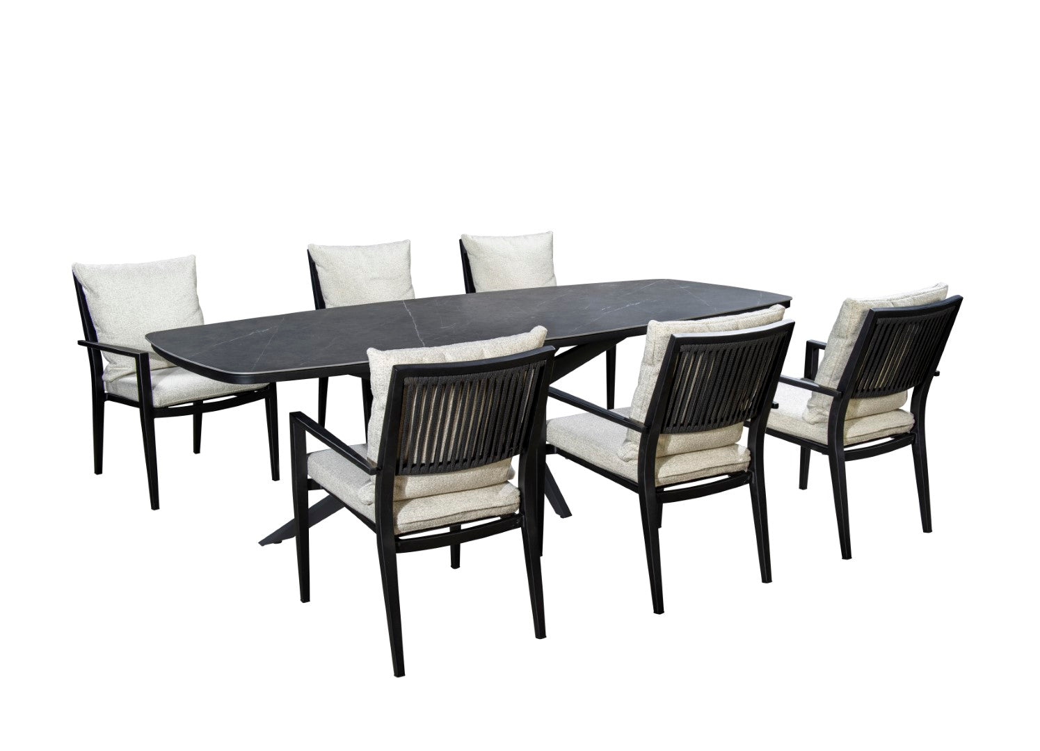 - Frame alu black met zwart touw en kussens in wol wit.