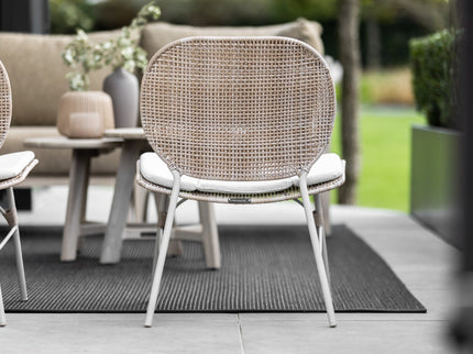 Met een aluminium/galvanized steel frame in een verfijnde linnen kleur biedt deze fauteuil niet alleen stabiliteit, maar ook een tijdloze uitstraling. De fibre afwerking in dezelfde linnen kleurtint voegt een extra dimensie toe aan het design.