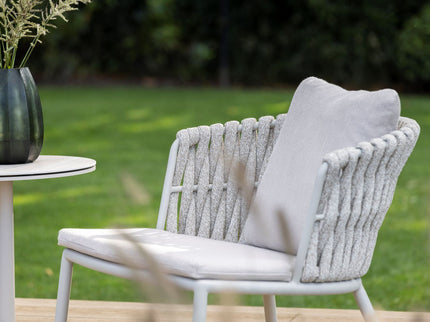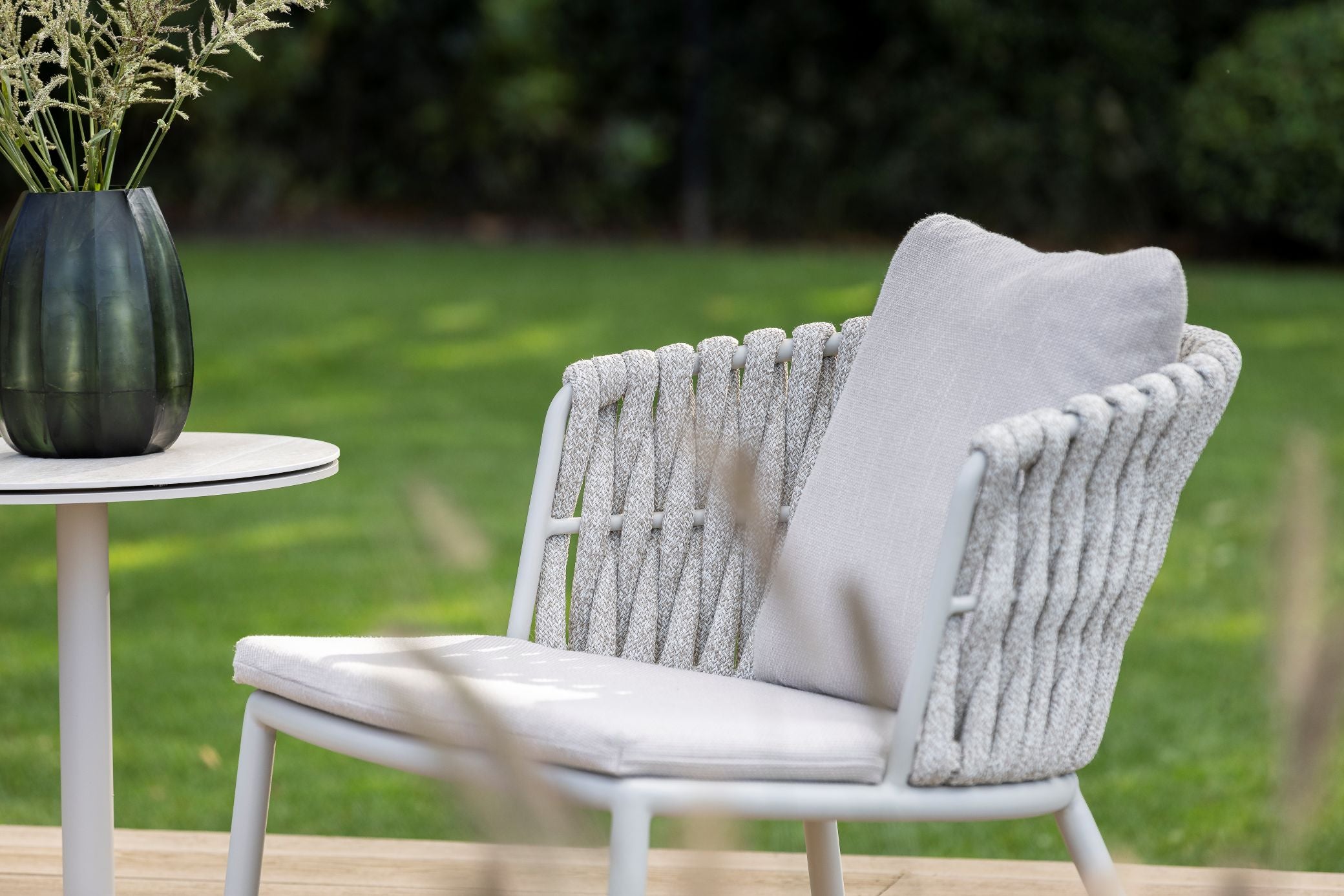 - Voorzien van comfortabele Cervo kussens, geschikt voor alle weersomstandigheden, in de delicate kleur stone.