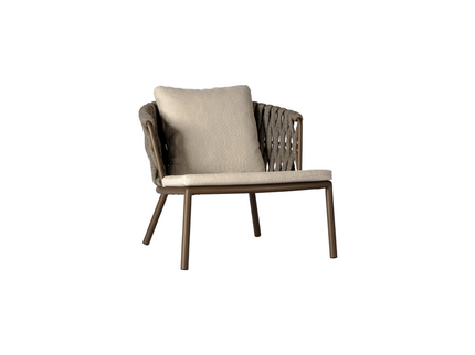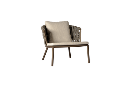 - Een aluminium frame in een bronzen afwerking, verrijkt met Rope in de verfijnde kleur wenge.