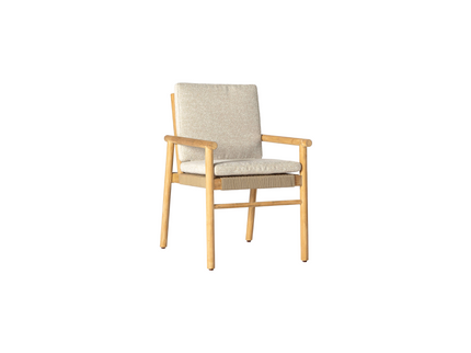 De tafel is vervaardigd met een stevig teak frame, bekend om zijn duurzaamheid en natuurlijke schoonheid. De stoelen zijn eveneens van teak gemaakt en zijn afgewerkt met een stijlvolle rope in de kleur sand. Dit biedt niet alleen een innovatieve uitstraling, maar zorgt ook voor een optimaal zitcomfort. Elk kussen is weerbestendig en uitgevoerd in een verfijnde beige tint, wat bijdraagt aan de luxe uitstraling van de set.