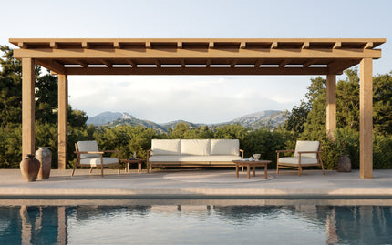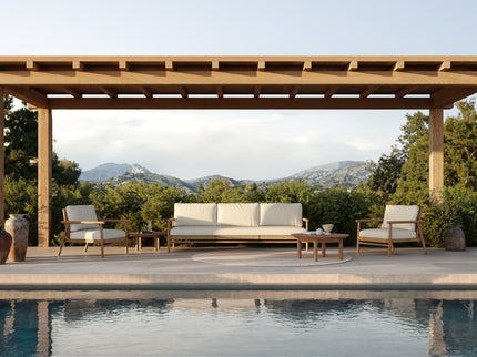 De salon tafels zijn vervaardigd met een stevig frame van teak, dat niet alleen duurzaamheid garandeert, maar ook een warme uitstraling biedt. De lounge chairs en bank zijn eveneens gemaakt van teak, afgewerkt met hoogwaardig rope in de verfijnde kleur sand. Inclusief all weather kussens in een elegante beige tint, zijn deze meubels een perfecte keuze voor zowel binnen- als buitenshuis.