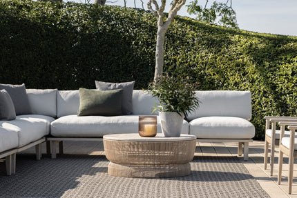 - De tafel is vervaardigd uit hoogwaardig aged teak, dat niet alleen duurzaamheid biedt, maar ook een tijdloze uitstraling heeft.