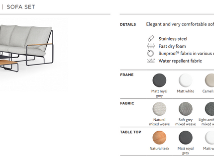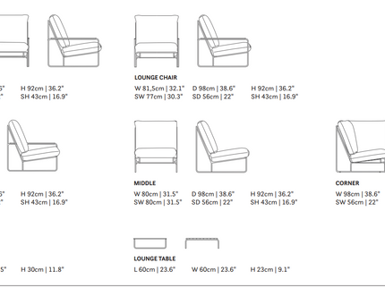 - Flexibiliteit: Ook beschikbaar in een comfortabele sofa set en losse onderdelen zijn aanvulbaar uit dezelfde lijn, zodat u uw perfecte lounge-ervaring kunt samenstellen.