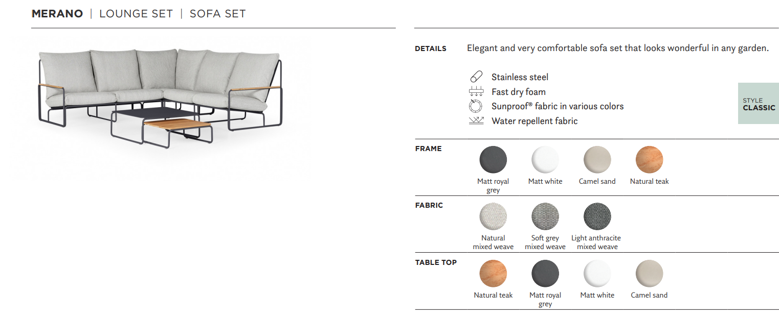 Merano | Lounge Set | Kleine Hoekopstelling | Matt Royal Grey Frame