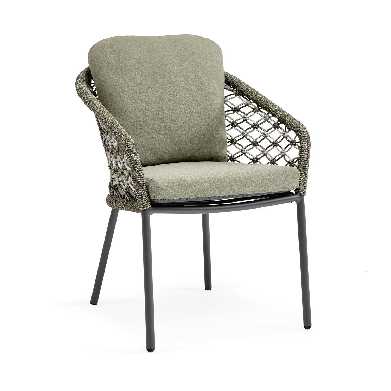 De Nappa tuinstoel van SUNS is een prachtige tuinstoel met uitstekend zitcomfort. De Nappa tuinstoel bestaat uit een combinatie van gepoedercoat aluminium, hoogwaardig rope en waterafstotende tuinkussens. Het frame van de Nappa tuinstoel is gemaakt van gepoedercoat aluminium. Aluminium is ijzersterk, licht van gewicht en roest niet. De rug- en armleuningen van de Nappa tuinstoel bestaat uit rope van hoogwaardige kwaliteit wat is gevlochten in een macramé patroon. Hierbij is er gebruik gemaakt van twee verschillende kleuren rope wat zorgt voor een speels effect. De meegeleverde tuinkussens van de Nappa tuinstoel zijn gemaakt van een water- en vuilafstotend stof en heeft een hoge kleurechtheid.