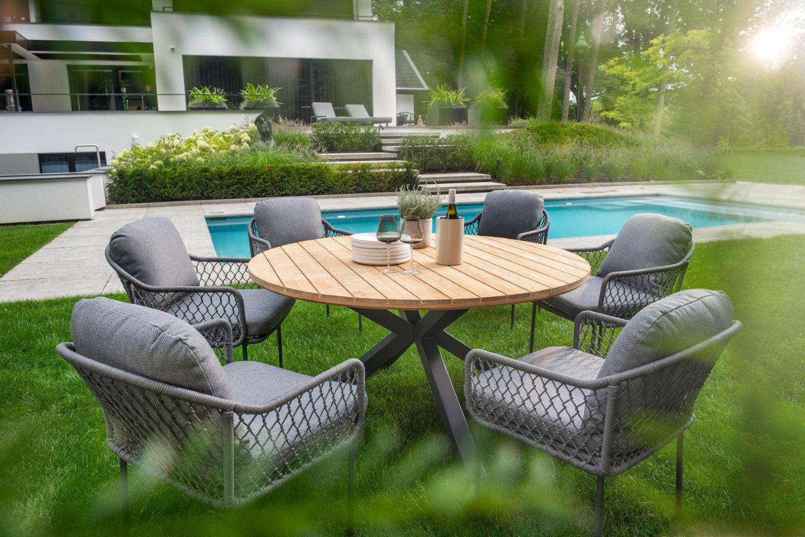 - Ø 150 x H 75 cm, perfect voor grotere eetgedeeltes