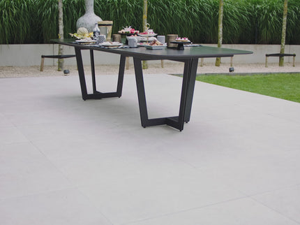 De Palermo biedt met gemak plaats voor 6 personen en door zijn bijzondere aluminium frame kun je met gemak ook aan de kopse kant van de tafel plaatsnemen. Het tafelblad is gemaakt van Neolith. Neolith is "Gesinterd Steen", een productcategorie dat buiten helemaal op zijn plek is! Het is kleurvast, kras- en hittebestendig. Dit prachtige blad is verkrijgbaar in de kleur wit, grijs en zwart. In deze kleuren zie je de aderen lopen over het tafelblad.