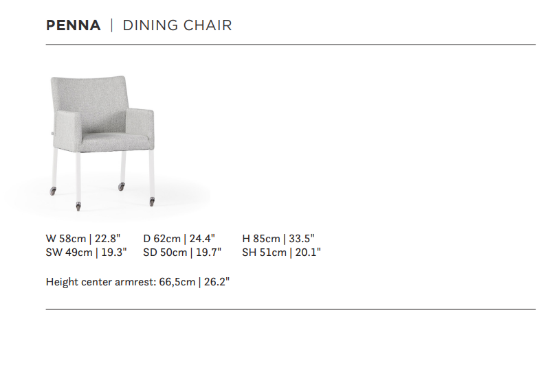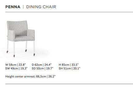 Ontdek de luxe van de Penna Diner Stoel met Wielen. Deze elegante stoel is perfect voor elke eetruimte en combineert... Lees meer