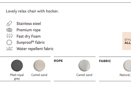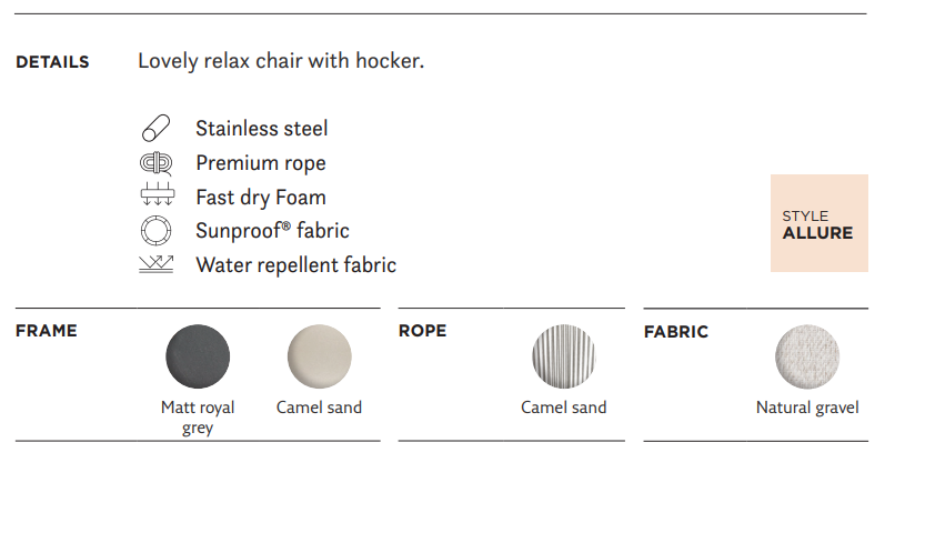 - Elk frame is afgewerkt met hoogwaardig camel sand rope en een natuurlijk gravel kussen voor ultiem comfort.