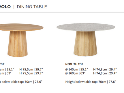 De tafel met een diameter van Ø 1.40 meter biedt ruimte aan 5 tot 6 personen en bij de variant met een diameter van Ø 1.60 meter kunnen tot wel 8 personen plaatsnemen.