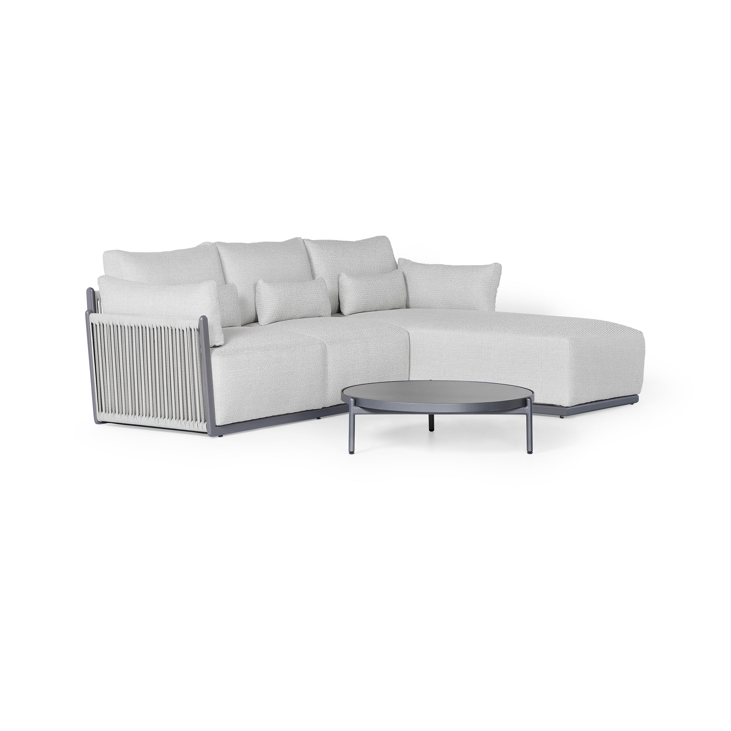De set biedt een luxe uitstraling en hoog comfort, terwijl de materialen weerbestendig en onderhoudsvriendelijk zijn. Combineer de set met een lounge tafel uit dezelfde serie voor een complete buitenervaring.