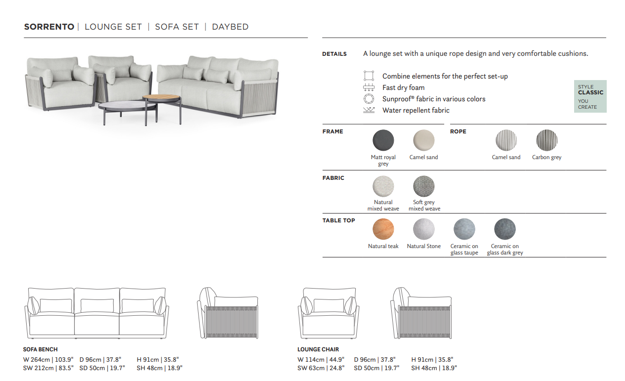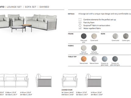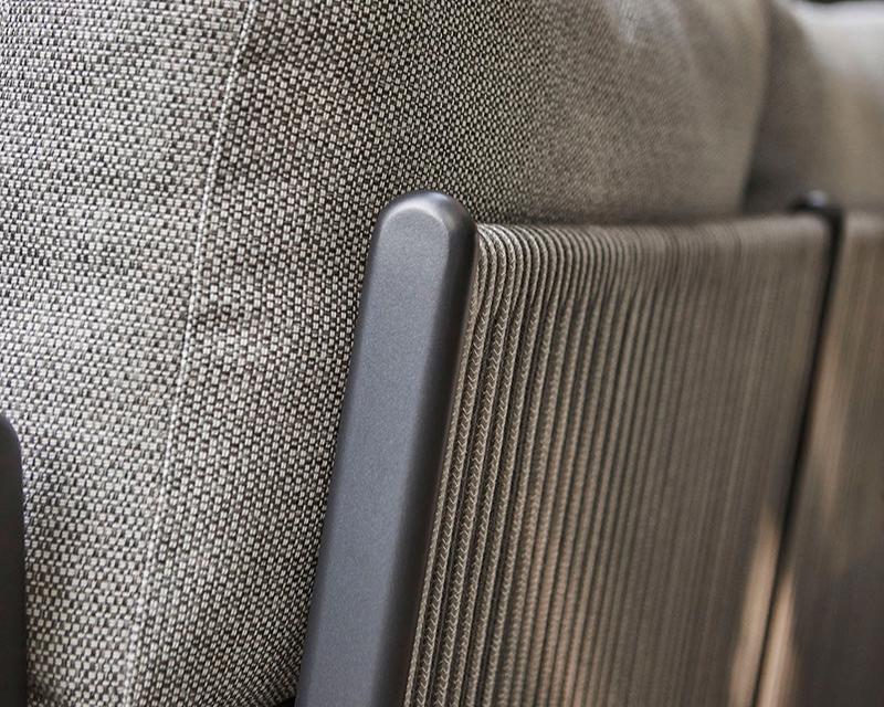 De set biedt een luxe uitstraling en hoog comfort, terwijl de materialen weerbestendig en onderhoudsvriendelijk zijn. Combineer de set met een lounge tafel uit dezelfde serie voor een complete buitenervaring.