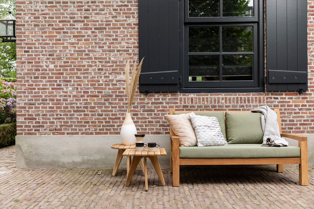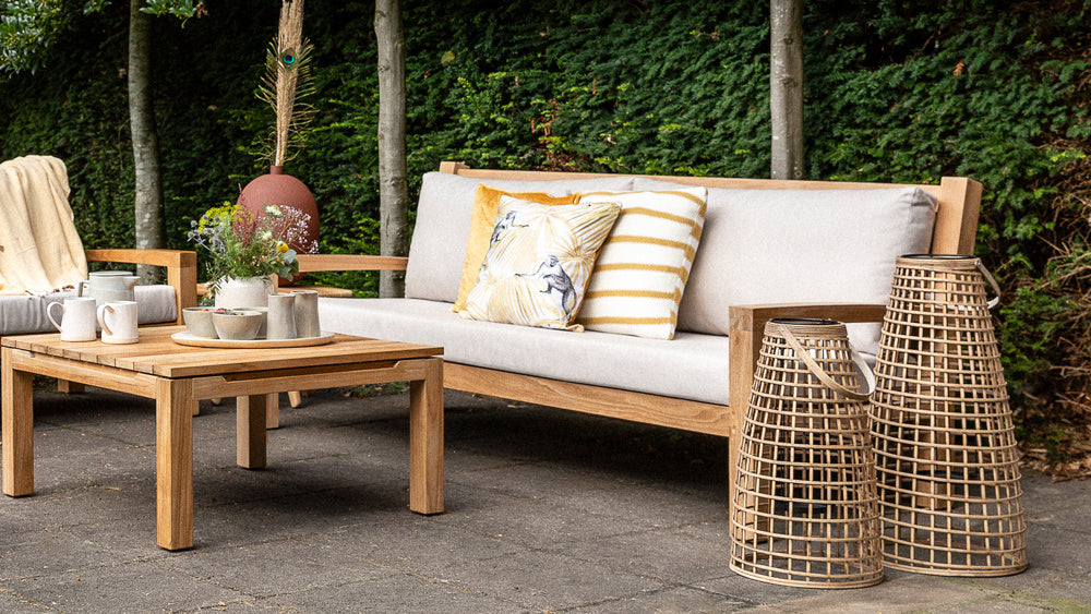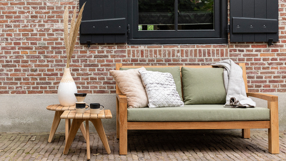 In de herfst/winterperiode adviseren we om de kussens droog op te slaan. Dit door de hoeveel bladval en de hoge luchtvochtigheid in deze maanden. Hierdoor bestaat de mogelijkheid dat de kussens niet goed kunnen drogen waardoor vuil en vocht een slechte invloed kunnen hebben op de kwaliteit van de kussens. Daarnaast is het niet goed om het teakhout af te dekken met een hoes in de winterperiode. Omdat het hout blijft ademen onder een hoes, zal de regen- en/of bladval wat erop blijft liggen er voor zorgen dat het vocht niet meer weg kan. Dit zorgt voor condensvorming onder de hoes en zal schade opleveren aan het hout.